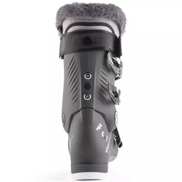 - Vrouwenspecifieke kraag: de hoogte van de kraag is aanzienlijk lager dan die van een uniseks kraag. Door de tulpvorm aan de achterkant past de kuit gemakkelijk. Het is minder gestructureerd om beter aangepast te zijn aan de kracht van vrouwelijke skiërs.