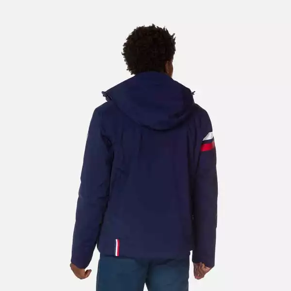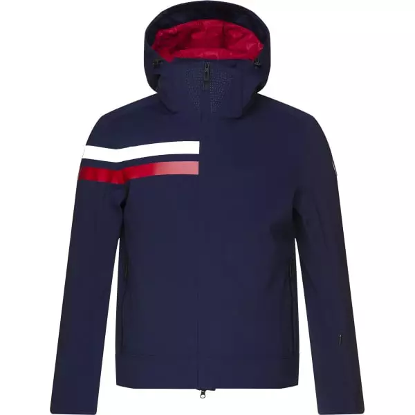 Deze jas voegt een aantal skispecifieke details toe, zoals een sneeuwvanger, gezichtsdoekje, duimlussen en een zakje voor de skipas, en niet te vergeten de iconische blauwe, witte en rode strepen die de look compleet maken en een eerbetoon zijn aan Rossignol’s rijke Franse en alpine erfgoed.